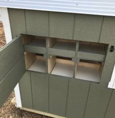Sometimes chickens will start to peck at their own eggs, destroying them before you have a chance to pick them up. Or, if you're going to be out of town for a couple of days, having this nest box, where the floor is angled and the eggs roll safely to the outside of the shelter, out of the chickens' reach, is an ideal situation!